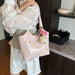 This large capacity handbag for women features a spacious interior suitable for work and school. The bag can hold essentials such as a laptop, phone, wallet, and documents. It includes multiple compartments for organization and can be carried as a tote or shoulder bag, making it ideal for daily commuting and student use.