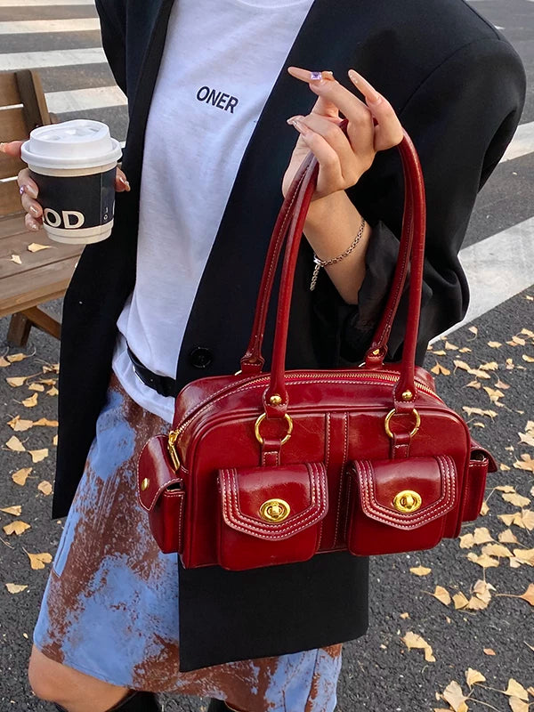 This multi-pocket Boston bag for women features a structured design with multiple compartments for organization. The bag can be carried by hand or worn on the shoulder, offering space for essentials such as a wallet, phone, keys, cosmetics, and other personal items. The durable construction makes it suitable for daily commuting, shopping, travel, and work.