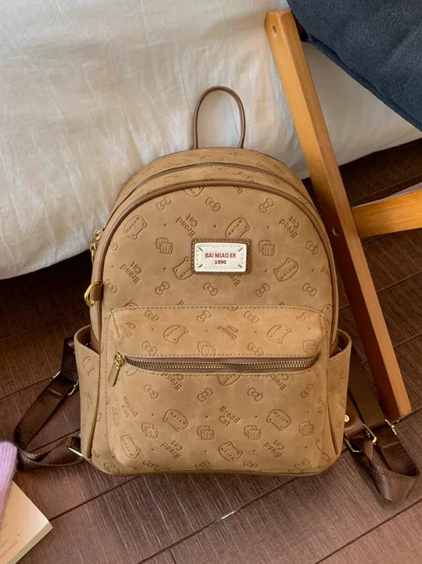 This cartoon print backpack for women features a large capacity design suitable for daily use. The backpack provides ample space for essentials such as books, a tablet, wallet, and personal items. Adjustable shoulder straps offer comfortable carrying, making it suitable for commuting, travel, shopping, and casual outings.