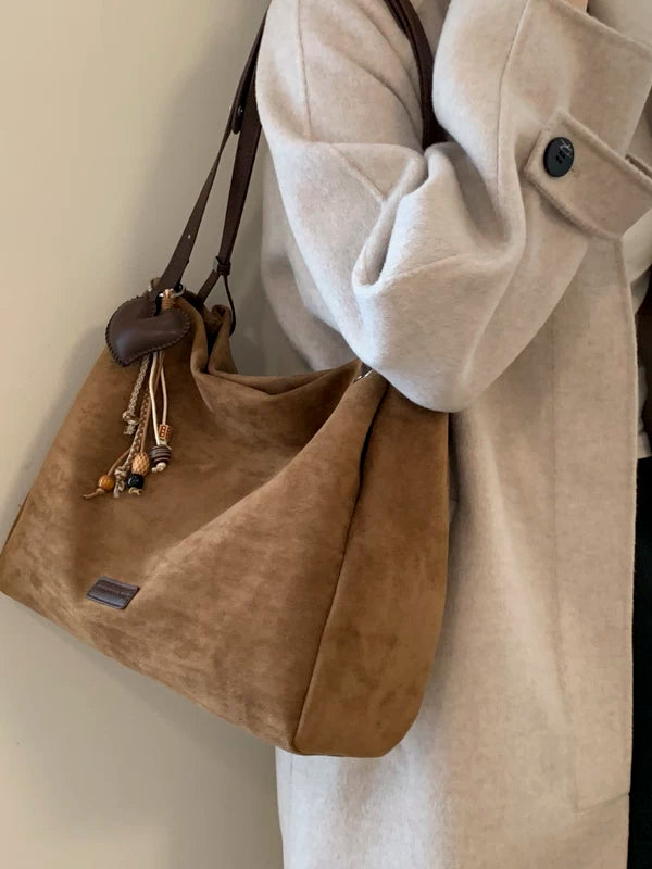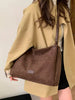 This suede tote bag for women features a large capacity design suitable for commuting and daily use. The bag provides enough space for essentials such as a laptop, documents, wallet, and other personal items. The shoulder straps allow for comfortable carrying, making it suitable for work, shopping, travel, and everyday activities.